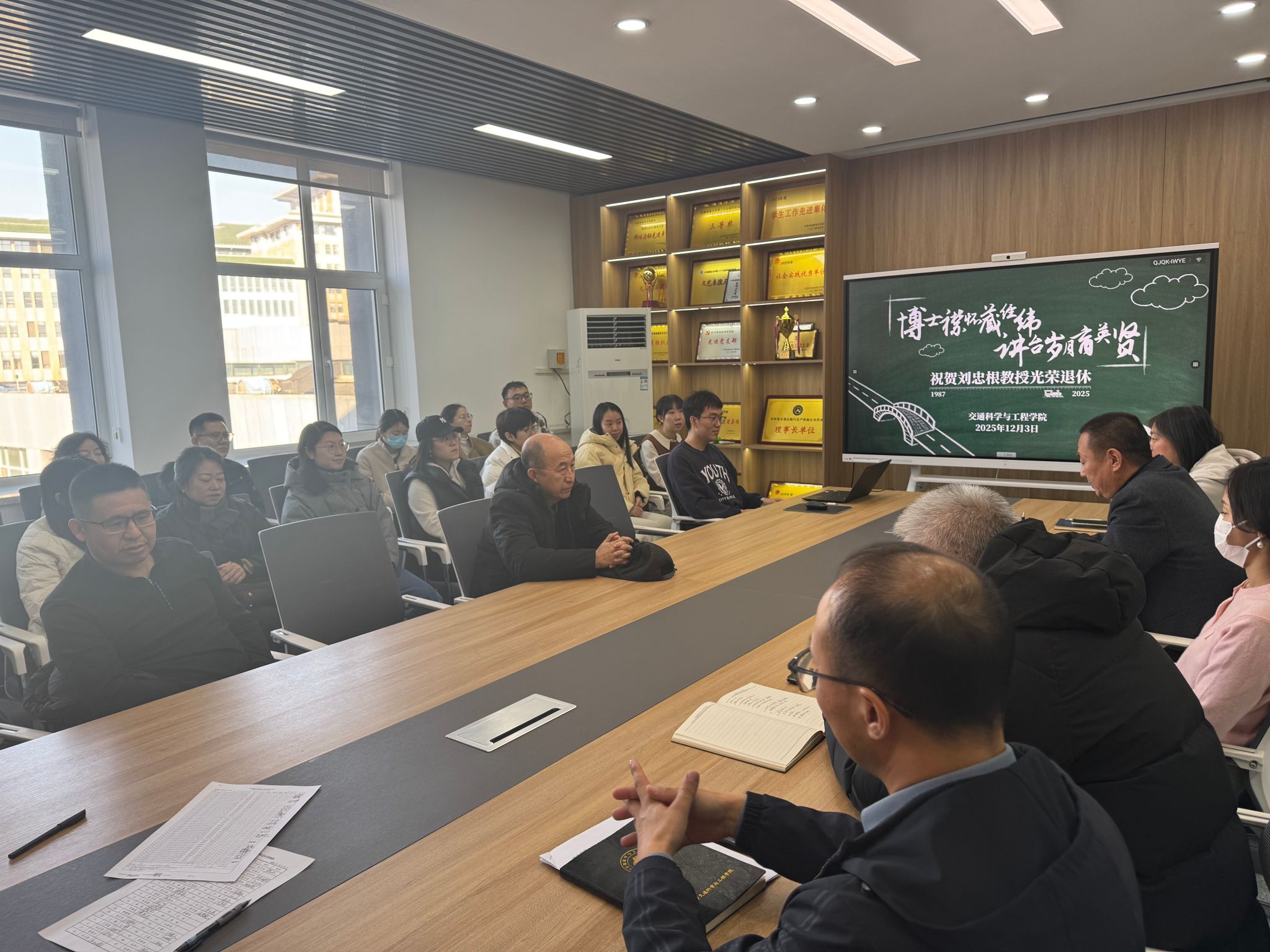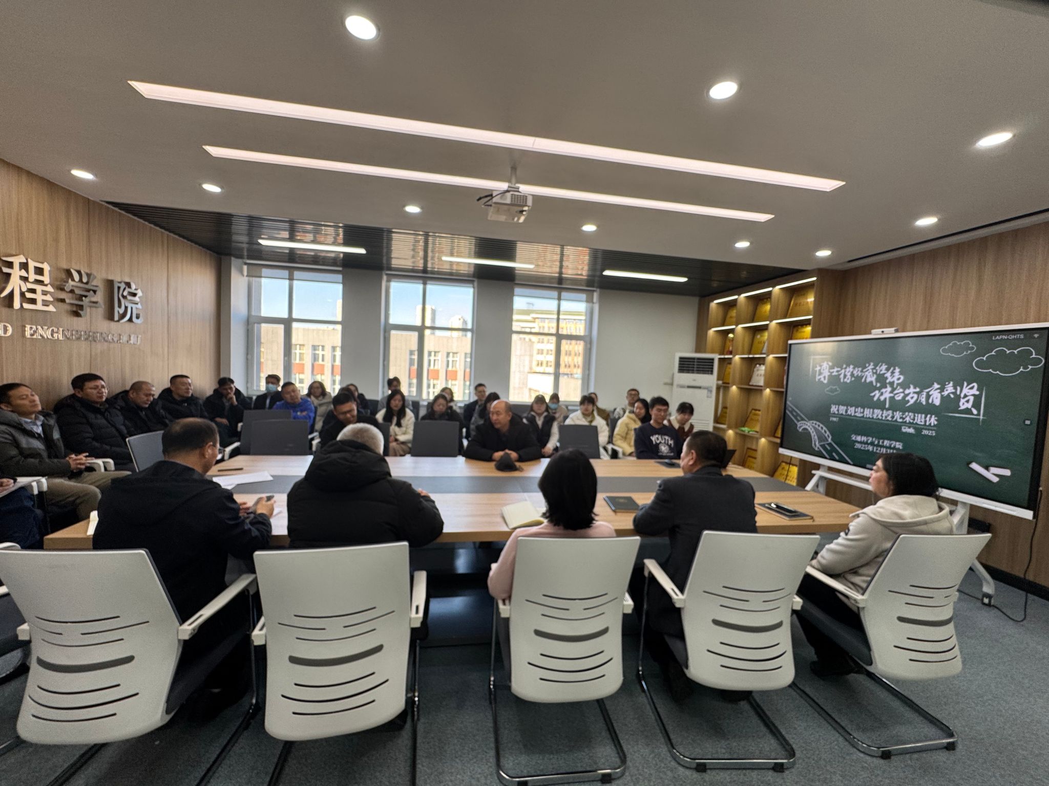 2025年12月3日,交通学科与工程学院于土木馆501会议室举办刘忠根教授荣休座谈会。座谈会由学院党委书记张文宝主持,学院领导班子和全体教师参加会议。