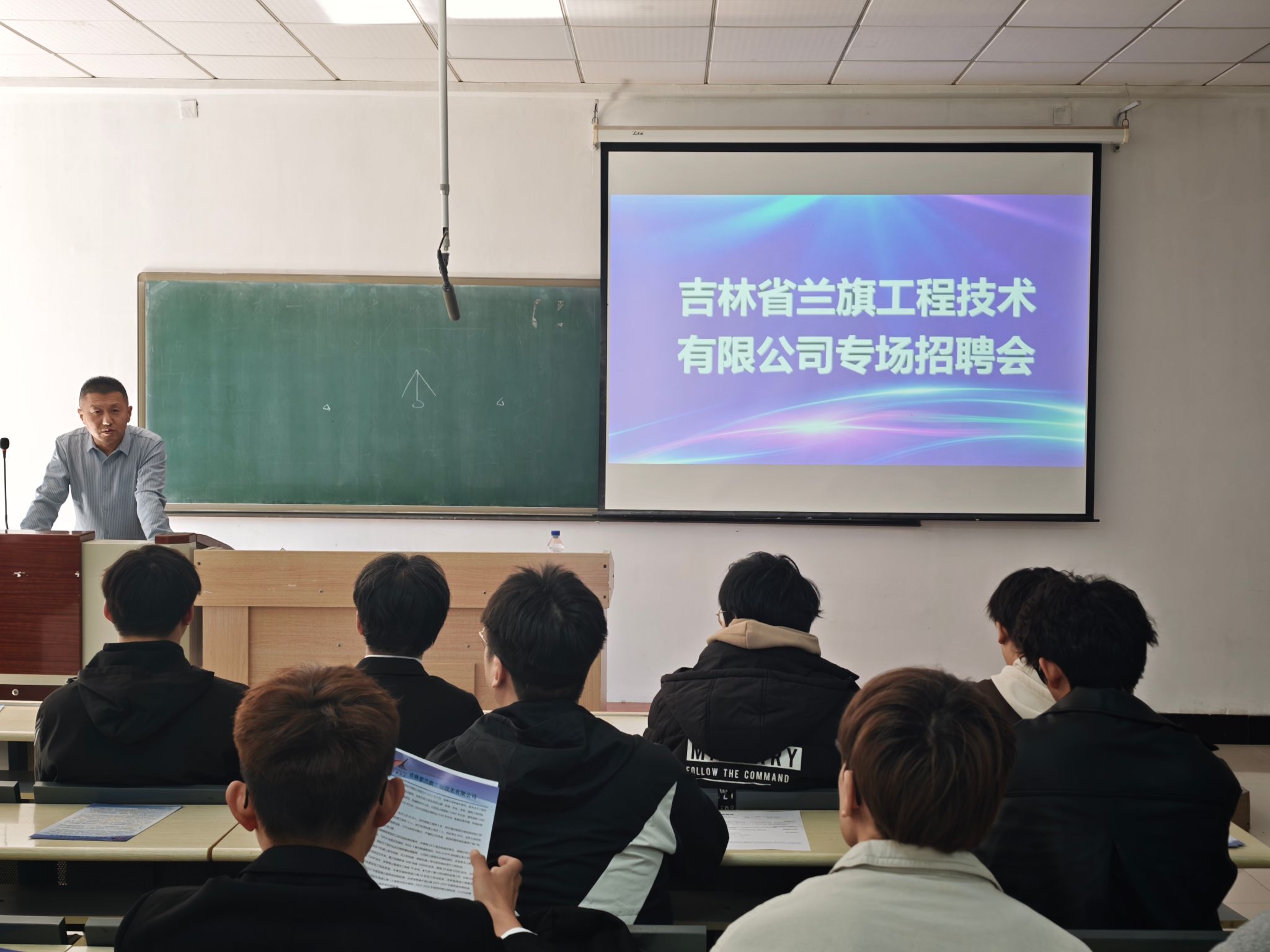 随后,吉林省兰旗工程技术有限公司的招聘负责人通过精彩的宣讲,向在场同学全面展示了企业的发展历程、业务版图、核心技术以及未来战略规划。负责人详细介绍了公司的人才培养体系、晋升通道及薪酬福利,让同学们对企业和未来的职业发展有了清晰的认知。